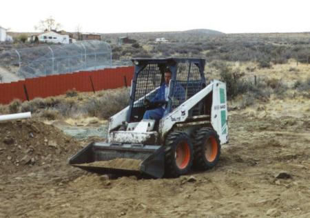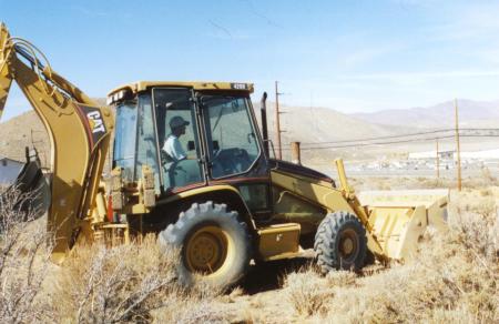 realizing that we were going to have a lot of water flow out of this well, we suddenly needed to build a temporary dike to divert this water flow to a safe spot on my lot. The excavation contractor had left for a week. So, we had to quickly find something. We soon discovered the neighbor living just south of me had a 'bobcat' front end loader. On inquiring on whether or not we could use it, I found that the bobcat actually belonged to the zoo. (That means they own 4 bobcats: 3 of the wild cat variety, and one earth moving machine!) So, I went over to the zoo, and got permission to use it. (One of the drillers was an experienced bobcat operator.)