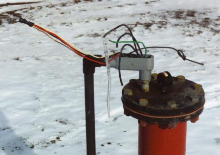 On Monday, November 26, the only noticeable thing that happened is that most of the remaining t of the remaining issues with the well were corrected. The leak through the wire was repaired, and the wiring was spliced and enclosed. The pump was tested and found to work fine. The well crew really liked my rebuild of the well tank system. But, it was now full of water, and freezing weather was predicted overnight. Per the well company's instructions, I tried to shut off the water going to the garage. I was not sucessful. So, I ran a hose out of the garage and just let the water run. The well people had also put a hose bib on the well casing. They had water running out of that through another hose. Even though there were two hoses attempting to drain the well, there was still about 10 PSI of presure in the casing! The only thing not corrected was the incorrect wiring for the casing heater. This will probably not be corrected this season.