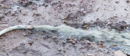 Over the weekend, the discovery was made that much of the tailings from the well had run down the side of the hill. This made an ugly gray 'lava flow' on the hillside. Although this should dissipate in time, it is ugly for now.
