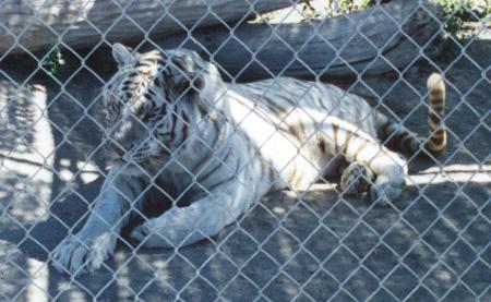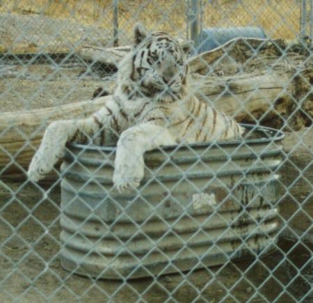 'Big, Bad, Beautiful' is how you would describe Nickolai the white Siberian tiger. He, too is a young animal. Even though he is not quite full size, he is already an imposing animal. When Nick is old enogh to breed, he and Tasha hope to raise some cubs! Nickolai loves to spend time in his water tub!