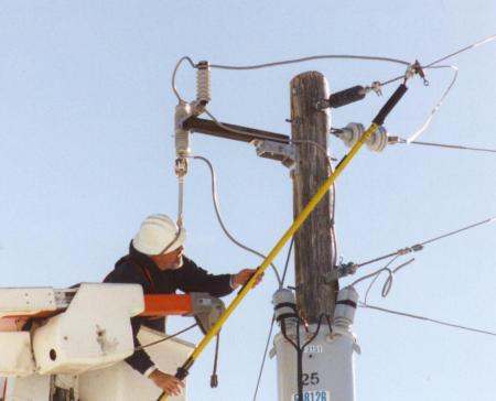 Saturday morning, I got a call from the utility. They were out connecting power! (Turns out the only place that had power problems in the previous windstorm was our transmitter site, so most crews were free for things like installations!) I got out there just in time to see the service finished and connected to the primary circuit (14 kV). The fuse was installed without incident, followed by the meter. With little ceremony, the main breaker was thrown. So, at 10:20 AM on Saturday, December 15th, Quadruplex Park/The Lion House came to life! I did a quick check of power throughout the house; everything appeared to be in order. Now, it was time to call the dealer, and get the Post-Delivery Repair and orientation (PDR) scheduled!
