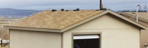 Well, the damage was indeed worse Thursday morning. The yard around both the house and garage contained broken shingles. Several shingles were missing from both the house and the garage. One shingle on the garage was bent up at an odd angle. A couple shingles on the huple shingles on the house were folded over. Still, the basically completed house looked really nice in the unusual light of that morning.