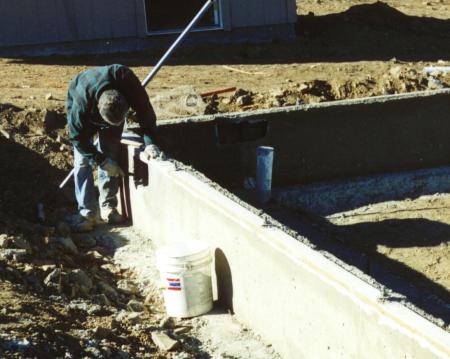 Another major milestone was reached on October 26th, when the garage floor was poured. Attention was then turned to the septic system, and the house foundation. The septic system was straightfoward, but very hard work due to the rocky soil. (I also found some interesting minerals in the tailings from the eight foot deep trenches.) The septic tank is an 1,000 gallon model. The trenches are backfilled with three feet of 2 inch gravel, and the leach lines went on top of this.