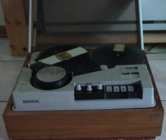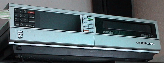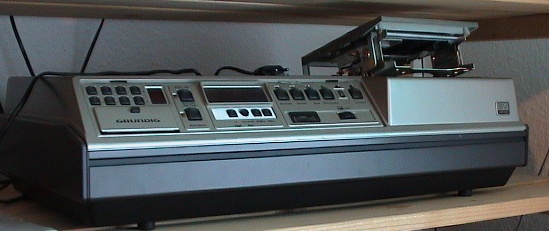 Format name: Supervideo SMPTE type: Format type: analog Scanning system: helical Year introduced: 1978 Developer: Grundig Was format sucessful? Y [All figures are for PAL, 625/50/2:1, unless noted.] NOTE: See 'VCR Standard' (2 formats back) for most details! PHYSICAL DATA: Tape width: 1/2" Tape speed(s): Tape thickness: Playing time(s): 240 min (VC60 cassette) Cassette dimensions: A coaxial cassette was used VIDEO: Track length: Track width: Track angle: Guard band width: Headwheel diameter: Speed: Head-to-tape writing speed: Gap width: Head azimuth offset angle (one head): No. of segments: No. of lines/segment: Control track width: Recorded waveform: --Video modulation or Component luminance channel Sync tip frequency: Blanking frequency: Peak white frequency: Color carrier frequency: ? --Component color channel color under Chroma encoding: Sync tip frequency: Center frequency: Negative peak frequency: Positive peak frequency: --Digital only Data encoding system: Data rate: Audio segment location: AUDIO: No. of longitudnal channels: 1 Track width: No. of AFM channels: Carrier frequencies: No. of digital channels: Sampling rate: No. of bits: TIME CODE: REMARKS: The final derivitive of 'VCR Standard'. It was not compatible with either 'VCR Standard' and 'VCR Longplay'. It seems only Grundig manufactured this machine. It used video tracks half the width of 'VCR Longplay' and a further tape speed reduction to nearly double the playing time. In any case, Video 2000 and PAL VHS brought an end to this series of standards. No other technical details are known. A typical model number for this format is the Grundig SVR 4004.Click here for a picture of a Supervideo VCR. Thanks, Klaus Carstens!
