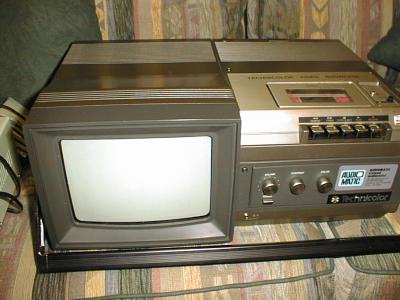 Format name: Cartrivision SMPTE type: Format type: analog Scanning system: 2 head helical Year introduced: 1972 Developer: Cartridge Television, Inc. Was format sucessful? N [All figures are for NTSC, 525/60/2:1, unless noted.] PHYSICAL DATA: Tape width: 1/2"? Tape speed(s): Tape thickness: Playing time(s): Cassette dimensions: It used a cassette, as the name implies! VIDEO: Track length: Track width: Track angle: Guard band width: Headwheel diameter: Speed: Head-to-tape writing speed: Gap width: Head azimuth offset angle (one head): No. of segments: No. of lines/segment: Control track width: Recorded waveform: --Video modulation or Component luminance channel Sync tip frequency: Blanking frequency: Peak white frequency: Color carrier frequency: --Component color channel Chroma encoding: Sync tip frequency: Center frequency: Negative peak frequency: Positive peak frequency: --Digital only Data encoding system: Data rate: Audio segment location: AUDIO: No. of longitudnal channels: Track width: No. of AFM channels: Carrier frequencies: No. of digital channels: Sampling rate: No. of bits: TIME CODE: Not used. REMARKS: Cartrivision was an early attempt at a home VCR. It was marketed very briefly in a few major department stores. Allegedly used skip-field recording, actually recording every third field! Parts of these machines show up every now and then. These machines were briefly sold as part of a TV/VCR console, and never as a stand-alone deck. When Cartridge television folded, the remaining transport assemblies (Without cabinet) were sold to Olson Electronics, who sold them for many years. One unique and ahead-of-it's time feature was a simple mechanism in the cassette for preventing rewinding in a home machine. This was intended for movie rental tapes; it was apparently easy to defeat. The I have recently acquired a complete Cartrivision tape transport from Richard Diehl. (Check out the 'other collectors' site for a look at his website!) I also have a portable B/W TV camera intended for use with this machine. This ws purchased from an early videotape hobbyist in my hometown nearly 21 years ago. His name is Frank Kluza, and he is responsible for part of my interest in videotape recorders. Look for more info in the near future!Click here for a picture of a Cartrivision machine.