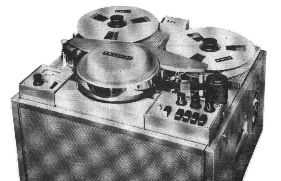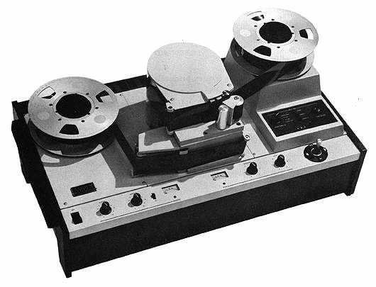 Format name: Bing Crosby Longitudnal SMPTE type: Format type: analog Scanning system: Longitudnal Year introduced: 1951-1952 Developer: Bing Crosby enginering group. Was format sucessful? N (Experimental pre-quad.) [These machines were not cabable of NTSC scan rates!] PHYSICAL DATA: Tape width: 1/2" Tape speed(s): 360 or 120 ips Tape thickness: Playing time(s): Cassette dimensions: VIDEO: Track length: Track width: Track angle: 0 Guard band width: Headwheel diameter: Speed: Head-to-tape writing speed: Head azimuth offset angle (one head): No. of segments: No. of lines/segment: Control track width: Recorded waveform: --Video modulation or Component luminance channel Used single channel AM (360 ips) or frequency division multiplex (120 ips) Sync tip frequency: Blanking frequency: Peak white frequency: Color carrier frequency: --Component color channel Chroma encoding: Sync tip frequency: Center frequency: Negative peak frequency: Positive peak frequency: --Digital only Data encoding system: Data rate: Audio segment location: AUDIO: No. of longitudnal channels: Track width: No. of AFM channels: Carrier frequencies: No. of digital channels: Sampling rate: No. of bits: TIME CODE: REMARKS: The Bing Crosby group was one of the more active players in the pre-quad videotape days. They demonstrated two systems, remarkable in that the transport from one of them survives in the Ampex Museum collection. It could be either a 360 ips, 1 channel machine, or more likely, a 120 ips, 12 channel machine. The machine in the pictures below is almost certainly the 120 ips, 12 channel machine.Click here for a picture of the Bing Crosby VTR.