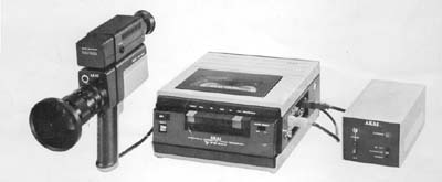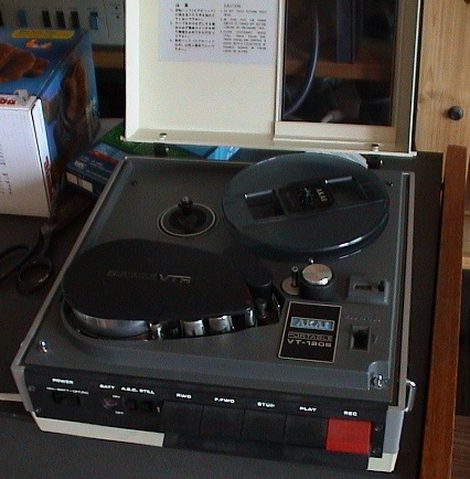 Format name: Akai 1/4" European open reel, VT100 SMPTE type: Format type: analog Scanning system: 2 head, half wrap helical Year introduced: Developer: Akai Was format sucessful? ? [All figures are for CCIR, 625/50/2:1, unless noted.] PHYSICAL DATA: Tape width: 1/4" Tape speed(s): 23.85 cm/sec Tape thickness: Playing time(s): 20 min on 5" reel, 1100' Cassette dimensions: VIDEO: Track length: Track width: Track angle: Guard band width: Headwheel diameter: Speed: 1500 RPM Head-to-tape writing speed: 18.49 m/sec. (?) Gap width: Head azimuth offset angle (one head): No. of segments: No. of lines/segment: Control track width: Recorded waveform: --Video modulation or Component luminance channel Sync tip frequency: Blanking frequency: Peak white frequency: Color carrier frequency: --Component color channel Chroma encoding: Sync tip frequency: Center frequency: Negative peak frequency: Positive peak frequency: --Digital only Data encoding system: Data rate: Audio segment location: AUDIO: No. of longitudnal channels: 1 Track width: No. of AFM channels: Carrier frequencies: No. of digital channels: Sampling rate: No. of bits: TIME CODE: REMARKS: This format used 1/4" Chromium Dioxide audio tape. It was used a lot for recording sporting events for later analysis. Video bandwidth was a paltry 2.5 MHz.Click here for a picture of a VT-100 VTR. Thanks, Klaus Carstens!