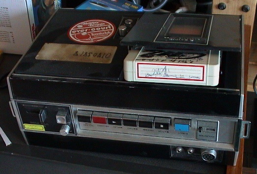 Format name: Quasar 'time machine' SMPTE type: Format type: analog Scanning system: 1 head helical Year introduced: 1975 Developer: Matsushita? Was format sucessful? Y [All figures are for NTSC, 525/60/2:1, unless noted.] PHYSICAL DATA: Tape width: Tape speed(s): Tape thickness: Playing time(s): Cassette dimensions: Wierd shape, with a big hump. VIDEO: Track length: Track width: Track angle: Guard band width: Headwheel diameter: Speed: Head-to-tape writing speed: Head azimuth offset angle (one head): No. of segments: No. of lines/segment: Control track width: Recorded waveform: --Video modulation or Component luminance channel Sync tip frequency: Blanking frequency: Peak white frequency: Color carrier frequency: --Component color channel Chroma encoding: Sync tip frequency: Center frequency: Negative peak frequency: Positive peak frequency: --Digital only Data encoding system: Data rate: Audio segment location: AUDIO: No. of longitudnal channels: Track width: No. of AFM channels: Carrier frequencies: No. of digital channels: Sampling rate: No. of bits: TIME CODE: Not used. REMARKS: Another, somewhat sucessful attempt to market a home VCR. This machine was apparently introduced a week before Sony introduced the Betamax. It used a one head helical scan format, which requires a nearly 360 degree tape wrap. The threading problem for such a system was solved by using a cassette that dropped over the head drum, and was essentially prethreaded. This format must have been popular for a while, as there may have been two different models produced. A surprising number of these machines show up on the surplus market, although I have yet to acquire one.