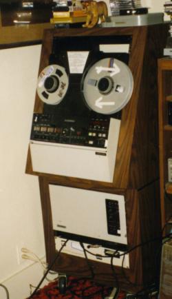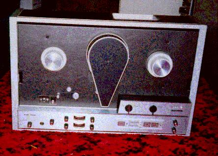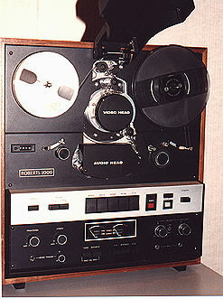 Format name: Akai X-500/Roberts 1000 SMPTE type: Format type: analog Scanning system: helical Year introduced: 1968 Developer: Akai/Roberts Was format sucessful? ? [All figures are for NTSC, 525/60/2:1, unless noted.] PHYSICAL DATA: Tape width: 1/4" Tape speed(s): Tape thickness: Standard audio open reel tape! Playing time(s): 40 min. Cassette dimensions: VIDEO: Track length: Track width: Track angle: Guard band width: Headwheel diameter: Speed: Head-to-tape writing speed: Gap width: Head azimuth offset angle (one head): No. of segments: No. of lines/segment: Control track width: Recorded waveform: --Video modulation or Component luminance channel Sync tip frequency: Blanking frequency: Peak white frequency: Color carrier frequency: --Component color channel Chroma encoding: Sync tip frequency: Center frequency: Negative peak frequency: Positive peak frequency: --Digital only Data encoding system: Data rate: Audio segment location: AUDIO: No. of longitudnal channels: Track width: No. of AFM channels: Carrier frequencies: No. of digital channels: Sampling rate: No. of bits: TIME CODE: REMARKS: This is one of the more interesting machines I have come across. It is a combination open reel video/audio recorder. The machine is layed out like a standard audio open reel, except there is a video scanner between the reels. You had your choice when threading the machine to either thread the conventional audio heads, or threading the video head (Which apparently had it's own capstan, and possibly narrow track audio heads. This machine was color capable. This machine was also built for Roberts by Akai, who marketed it as the Roberts 1000.Click here for a picture of the Roberts 1000.