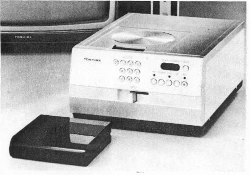 Format name: Toshiba LVR SMPTE type: Format type: analog composite Scanning system: helical Year introduced: 1979 Developer: Toshiba Sucessful? N [All figures are for NTSC, 525/60/2:1, unless noted.] PHYSICAL DATA: Tape width: 1/2" Tape speed(s): 5.88 m/sec. Tape thickness: Playing time(s): 2 hours, 26.5 seconds per track. Cassette dimensions: 13.5 X 14.0 X 3.5 cm VIDEO: Track length: Track width: 220 longitudnal tracks, 1 track used at a time. Tape was an endless loop, 100 meters long. Track angle: Guard band width: Headwheel diameter: Speed: Head-to-tape writing speed: Head azimuth offset angle (one head): No. of segments: No. of lines/segment: Control track width: Recorded waveform: --Video modulation or Component luminance channel Sync tip frequency: Blanking frequency: Peak white frequency: Color carrier frequency: --Component color channel Chroma encoding: Sync tip frequency: Center frequency: Negative peak frequency: Positive peak frequency: --Digital only Data encoding system: Data rate: Audio segment location: AUDIO: No. of longitudnal channels: Track width: No. of AFM channels: Carrier frequencies: No. of digital channels: Sampling rate: No. of bits: TIME CODE: ? REMARKS: A novel attempt at a longitudnal VTR. The endless tape was wound on a large reel. The heads and capstan were inside the reel hub. The tape was pulled from the inside of the pack, past the heads, and then wound back on the outside, sort of like an 8-track audio cartridge. The head would drop to the next track at the splice. With 220 tracks and just 26.5 seconds of time on each tape loop, this machine offered something that no other VTR has ever had: near-instantaneous random access. The control system had modes that allowed programmed and repeat playback of segments. In all, it could record 2 hours. Despite the odd tape path, the tape was removable as a cassette. The machine could do color at 240 lines resolution, not bad for a longitudnal format! This machine never made it to the production stage.Click here for a picture of a Toshiba LVR VTR.