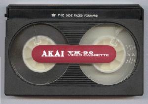 Format name: Akai 1/2" European cassette, VT300 SMPTE type: Format type: analog Scanning system: 2 head, half wrap helical Year introduced: Developer: Akai Was format sucessful? ? [All figures are for CCIR, 625/50/2:1, unless noted.] PHYSICAL DATA: Tape width: 1/2" Tape speed(s): Tape thickness: Playing time(s): Cassette dimensions: VIDEO: Track length: Track width: Track angle: Guard band width: Headwheel diameter: Speed: Head-to-tape writing speed: Gap width: Head azimuth offset angle (one head): No. of segments: No. of lines/segment: Control track width: Recorded waveform: --Video modulation or Component luminance channel Sync tip frequency: Blanking frequency: Peak white frequency: Color carrier frequency: --Component color channel Chroma encoding: Sync tip frequency: Center frequency: Negative peak frequency: Positive peak frequency: --Digital only Data encoding system: Data rate: Audio segment location: AUDIO: No. of longitudnal channels: Track width: No. of AFM channels: Carrier frequencies: No. of digital channels: Sampling rate: No. of bits: TIME CODE: REMARKS: An uncommon early cassette format. Little else known at this time.Click here for a picture of a VT-300 VTR.