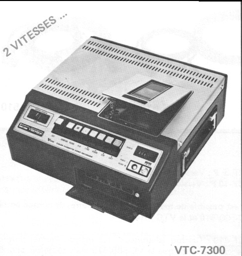 Format name: JVC KV-1 SMPTE type: Format type: analog composite Scanning system: helical Year introduced: ? Developer: JVC Sucessful? N [All figures are for NTSC, 525/60/2:1, unless noted.] PHYSICAL DATA: Tape width: 2" Tape speed(s): Tape thickness: Playing time(s): Cassette dimensions: VIDEO: Track length: Track width: Track angle: Guard band width: Headwheel diameter: Speed: Head-to-tape writing speed: Head azimuth offset angle (one head): No. of segments: No. of lines/segment: Control track width: Recorded waveform: --Video modulation or Component luminance channel Sync tip frequency: Blanking frequency: Peak white frequency: Color carrier frequency: --Component color channel Chroma encoding: Sync tip frequency: Center frequency: Negative peak frequency: Positive peak frequency: --Digital only Data encoding system: Data rate: Audio segment location: AUDIO: No. of longitudnal channels: Track width: No. of AFM channels: Carrier frequencies: No. of digital channels: Sampling rate: No. of bits: TIME CODE: ? REMARKS: One of the first Japanese VTR's. Intended for professional use. It is a really interesting looking machine. It has a seperate tape transport, and 2 racks of electronics that look remarkably like a VR1000. The transport itself is lower and longer than the VR1000. The most remarkable part though, is the picture and audio monitor bridges. They are mounted on stalks that stick out of the top of the transport, and can apparently be angled to meet the user's desires.