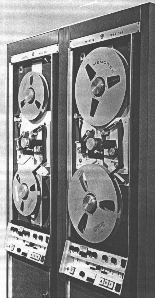 Format name: Ampex VR303 SMPTE type: Format type: analog Scanning system: Longitudnal Year introduced: 1965 Developer: Ampex Was format sucessful? N [All figures are for NTSC, 525/60/2:1, unless noted.] PHYSICAL DATA: Tape width: 1/4" Tape speed(s): 100 i.p.s. Tape thickness: See notes Playing time(s): 50 minutes Cassette dimensions: 12 1/2" open reel VIDEO: Track length: Track width: Track angle: 0 Guard band width: Headwheel diameter: Speed: Head-to-tape writing speed: Head azimuth offset angle (one head): No. of segments: No. of lines/segment: Control track width: Recorded waveform: --Video modulation or Component luminance channel Sync tip frequency: Blanking frequency: Peak white frequency: Color carrier frequency: --Component color channel Chroma encoding: Sync tip frequency: Center frequency: Negative peak frequency: Positive peak frequency: --Digital only Data encoding system: Data rate: Audio segment location: AUDIO: No. of longitudnal channels: Track width: No. of AFM channels: Carrier frequencies: No. of digital channels: Sampling rate: No. of bits: TIME CODE: REMARKS: This machine was introduced circa 1965 for industrial or educational use. It is a longitudnal standard, with a tape speed of 100 ips. It featured a whopping 1.5 MHz of video bandwidth! The tape used was 'Ampex 143 Video Tape'. This tape was exceedingly thin for it's day (.5 mils.), and a 12 1/2" reel of tape held 12,600 feet! The machine was in a cabinet very similar to their type 'A' machines, and weighed 95 pounds. Cost was, $3,950, which was a lot in 1965. It was also available in a roll-around cart, along with a camera, picture monitor and other accessories. (System cost was $6,000.) I seriously doubt many were made, and anyone finding one will have found a historically interesting machine.Click here for a picture of a VR303 VTR.