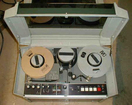 The IVC 9000 is considered by many to be the best analog VTR ever built. This machine was designed from the ground up to be high performance everything! It's design was borrowed heavily from the Ampex AVR-1. Like it's quad 'cousin', the 9000 featured vaccuum columns, and a vaccuum capstan. The small scanner and the half-wrap of the tape made for a much more forgiving segmented tape format with 57 lines per segment. The control head was also mounted on the scanner for better video tracking accuracy. The timebase stability of this transport design was good enough that an analog timebase corrector was adequate. This format was eventually sqeezed down, and became the basis for SMPTE inch type B! (Another format that is dearly loved by it's proponents. They calim the video is 'warmer' because of the analog TBC!) Other advanced featuresof the 9000 included three channels of audio, super-wide (8 MHz) video bandwidth option, and all modular construction. The wide video bandwidth allowed the machine to be used for the 655 line, 48 frame format developed for motion picture work.